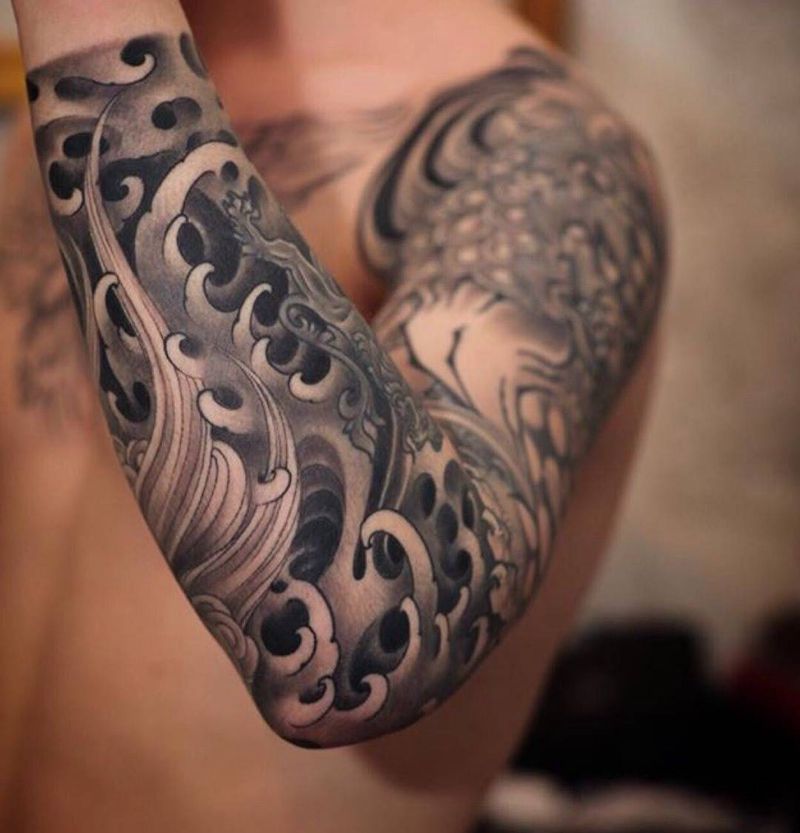当前位置: 首页 >山东省菏泽市纹身店-菏泽麒麟刺青纹身图案>最帅之花臂纹身图片_成品手臂传统植物动物纹身图案