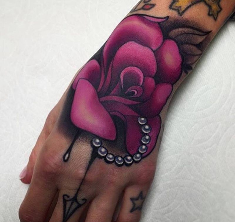 • 手背潮流时尚的玫瑰花眼睛纹身图案