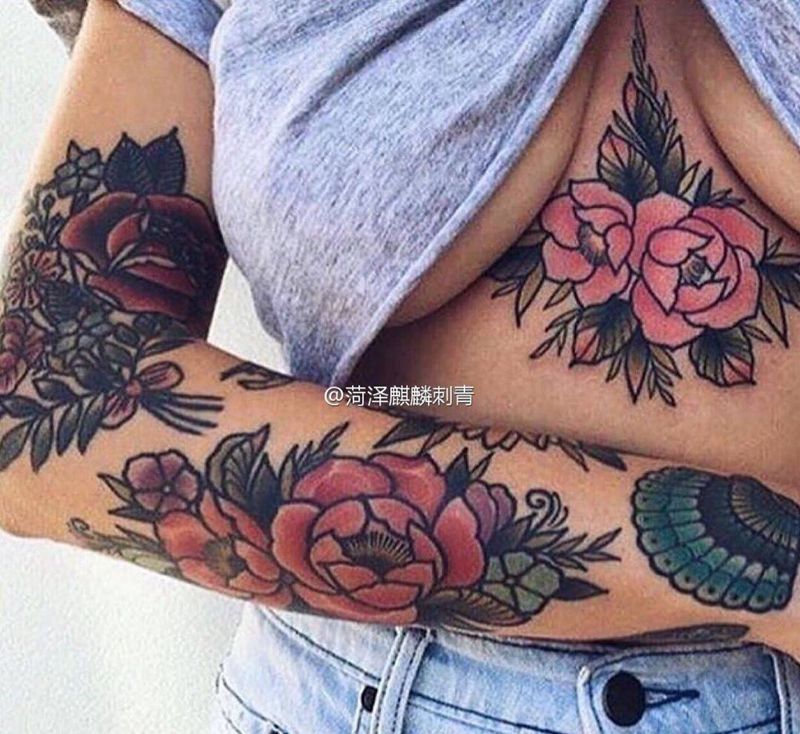 • 女性大花胸纹身_43张霸气漂亮的女性大花胸纹身图案作品