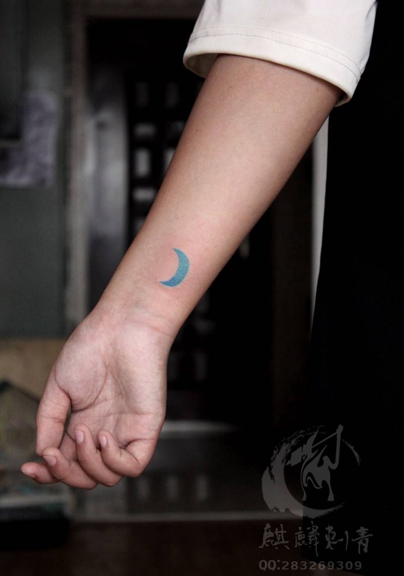 蓝月亮纹身图片_手臂成品清新静物纹身图案