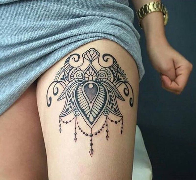女生大腿纹身纹身图片_成品腿部几何动物清新纹身图案