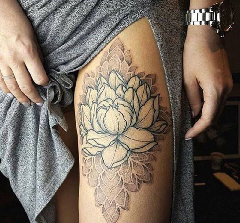 女生大腿纹身纹身图片_成品腿部几何动物清新纹身图案