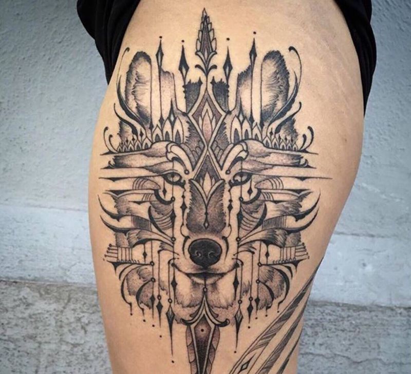 当前位置: 首页 >山东省菏泽市纹身店-菏泽麒麟刺青纹身图案>女生大腿纹身纹身图片_成品腿部几何动物清新纹身图案