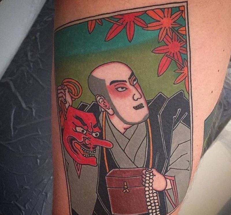 分享一组时尚的日式传统纹身图片_成品手臂腿部传统人物彩色日式纹身图案