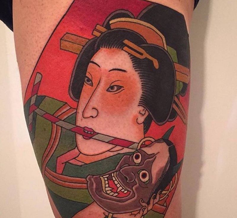 分享一组时尚的日式传统纹身图片_成品手臂腿部传统人物彩色日式纹身图案
