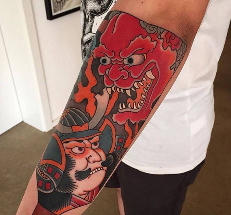 分享一组时尚的日式传统纹身图片_成品手臂腿部传统人物彩色日式纹身图案
