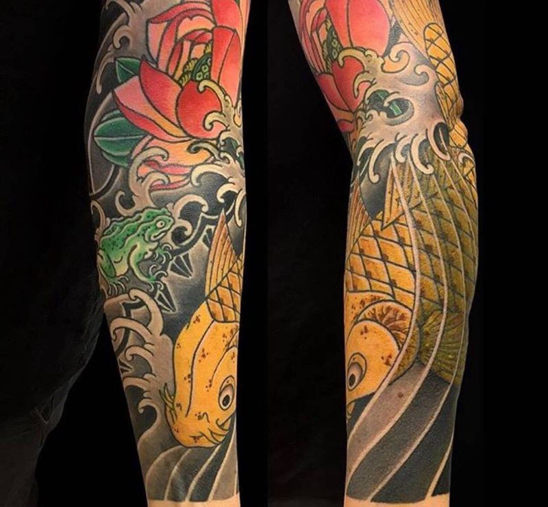 来点干货,传统欣赏纹身图片_手臂成品背部腿部传统植物花卉锦鲤牡丹般若纹身图案
