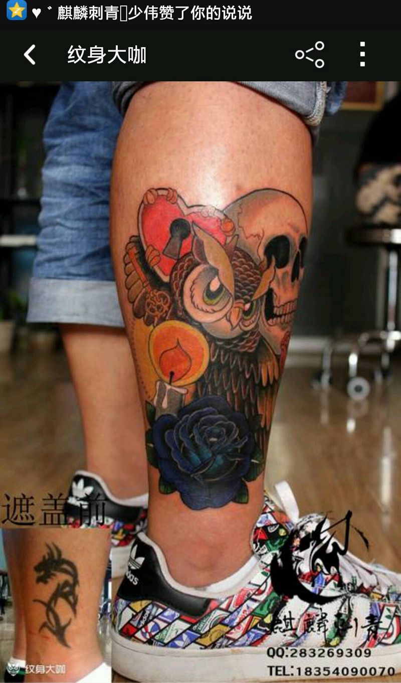 • T网红王老大花腿龙纹身图片_腿部新传统纹身图案
