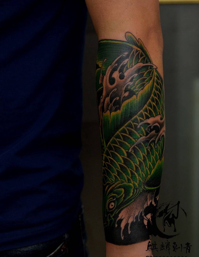 当前位置: 首页 >山东省菏泽市纹身店-菏泽麒麟刺青纹身图案>遮盖 包小臂纹身图片_遮盖动物成品手臂传统彩色锦鲤牡丹纹身图案