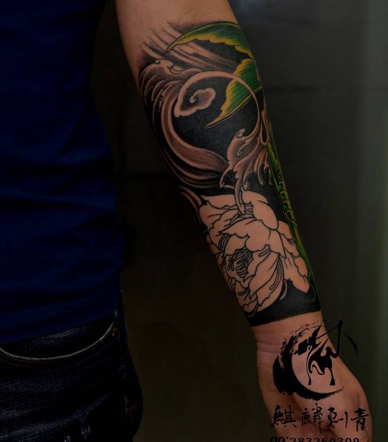 当前位置: 首页 >山东省菏泽市纹身店-菏泽麒麟刺青纹身图案>遮盖 包小臂纹身图片_遮盖动物成品手臂传统彩色锦鲤牡丹纹身图案