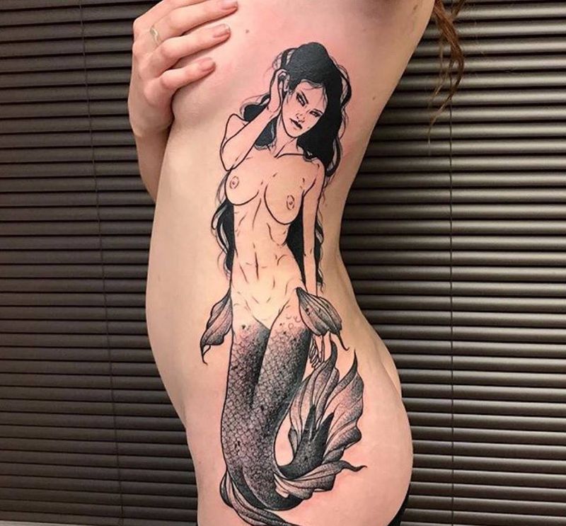 当前位置: 首页 >山东省菏泽市纹身店-菏泽麒麟刺青纹身图案>《自.我》纹身图片_成品人物腿部腰部简约黑灰纹身图案