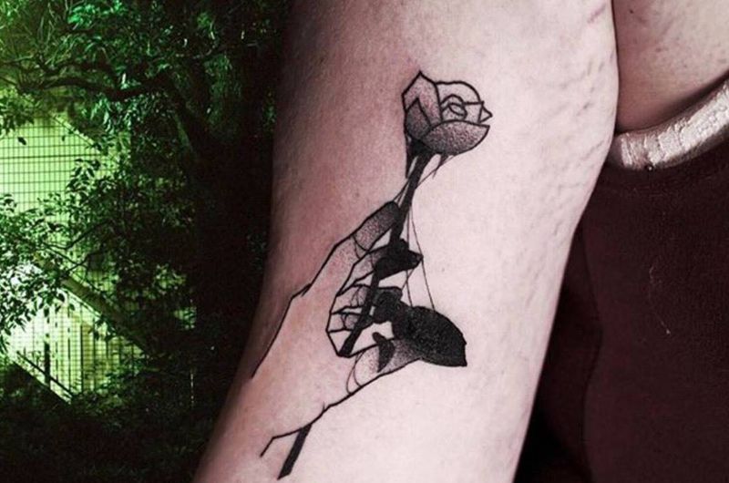 • 手背潮流时尚的玫瑰花眼睛纹身图案