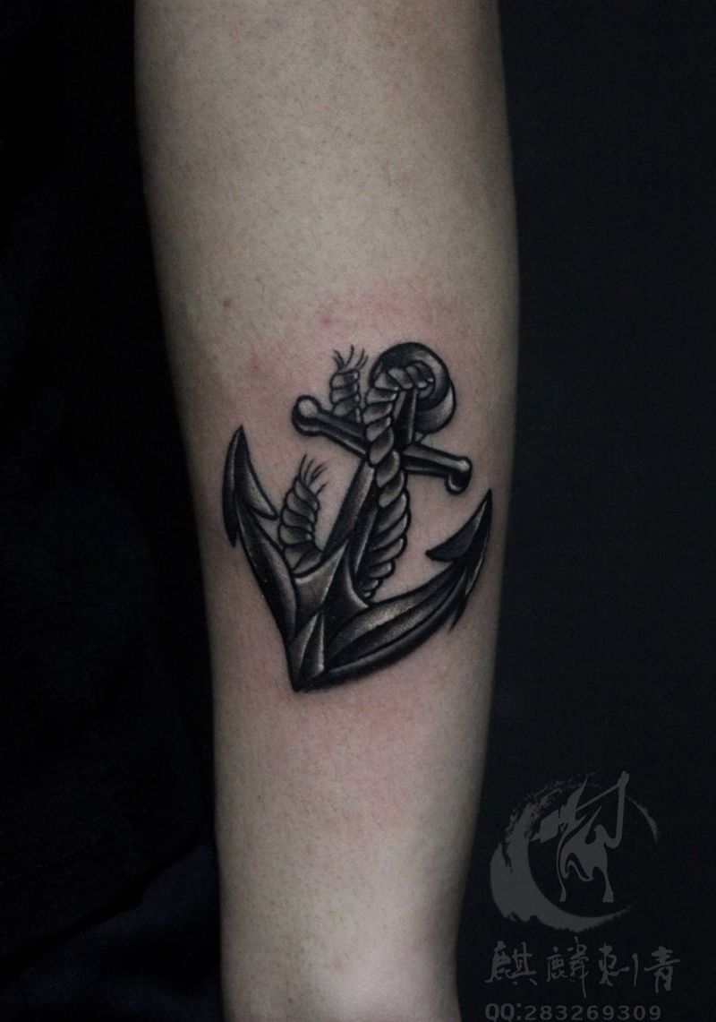 当前位置: 首页 >山东省菏泽市纹身店-菏泽麒麟刺青纹身图案>船锚⚓️纹身图片_成品手臂清新黑灰简约纹身图案
