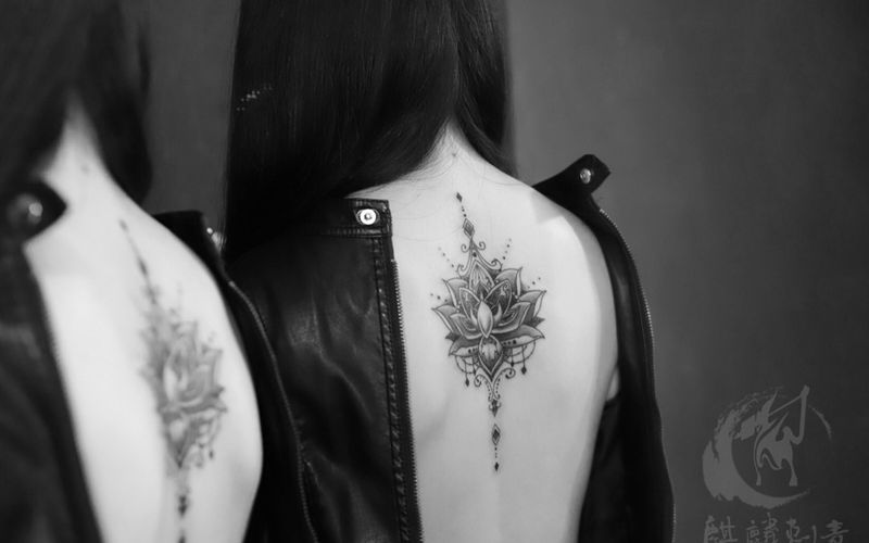 当前位置: 首页 >山东省菏泽市纹身店-菏泽麒麟刺青纹身图案>背部梵花纹身图片_成品背部传统清新简约线条黑灰静物纹身图案