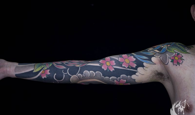当前位置: 首页 >山东省菏泽市纹身店-菏泽麒麟刺青纹身图案>传统菊花花臂纹身图片_肩部手臂新传统老传统菊花日式重彩纹身图案