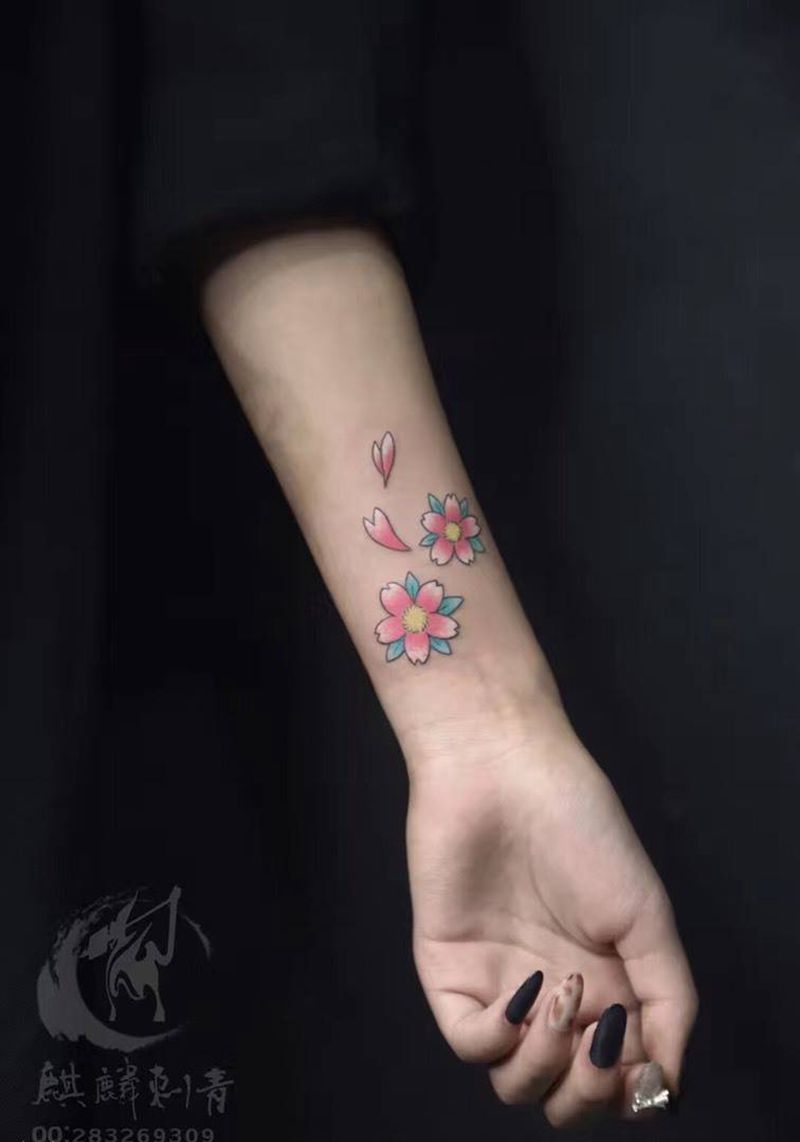 今生爱花 来世漂亮纹身图片_手臂胸部新传统樱花纹身图案