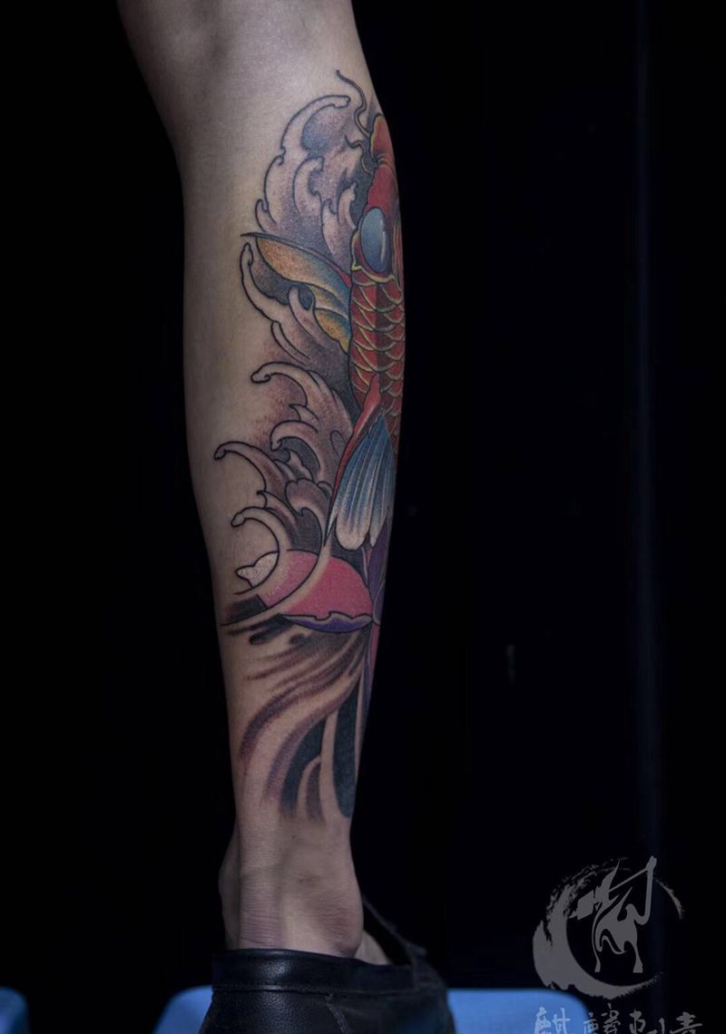 当前位置: 首页 >山东省菏泽市纹身店-菏泽麒麟刺青纹身图案>彩色小腿鲤鱼纹身图片_腿部老传统新传统鱼荷花纹身图案