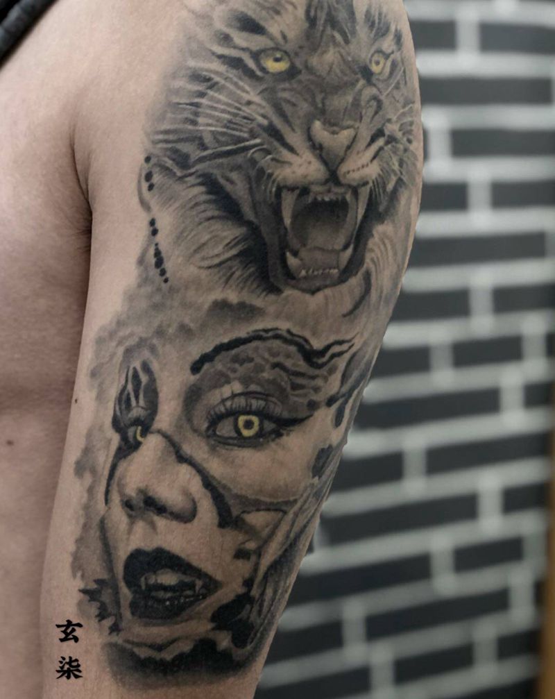 当前位置: 首页 >山东省滨州市纹身店-玄.刺青纹身图案>写实纹身图片_手臂欧美写实纹身图案