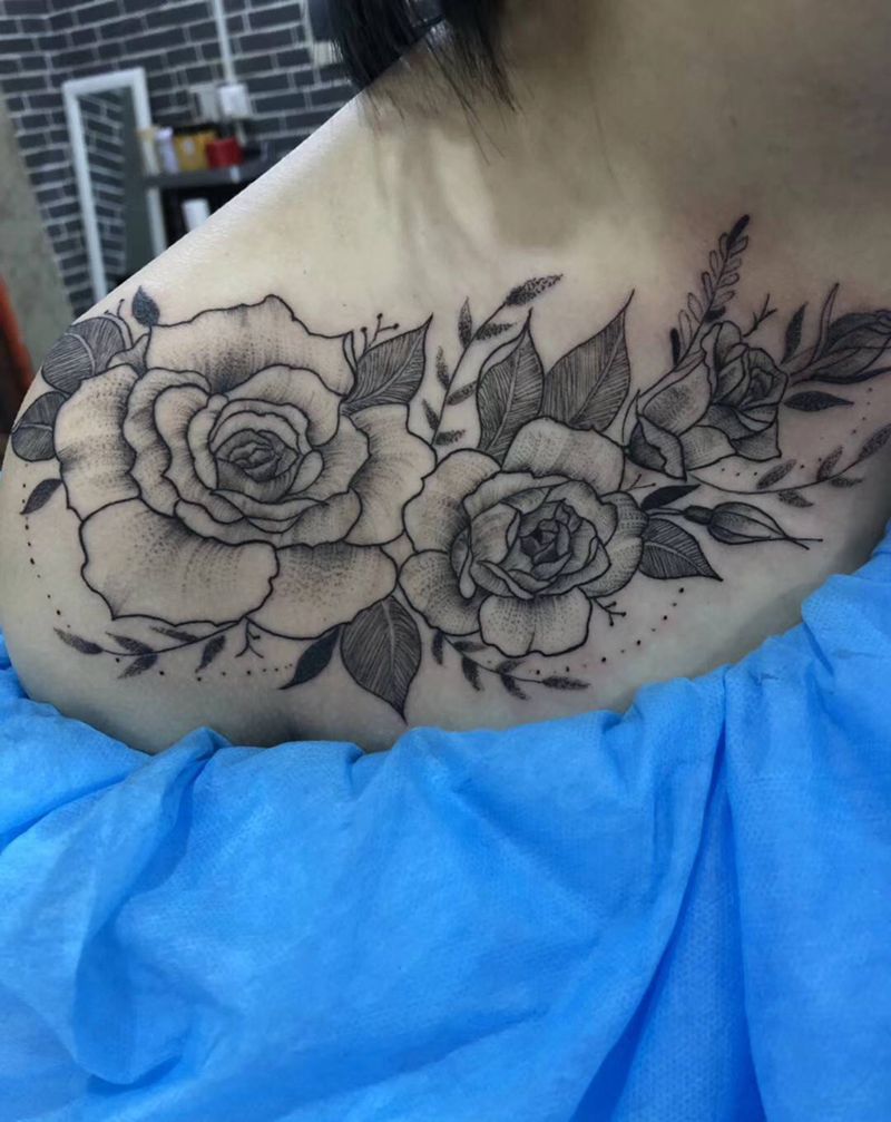 • 女性大花胸纹身_43张霸气漂亮的女性大花胸纹身图案作品