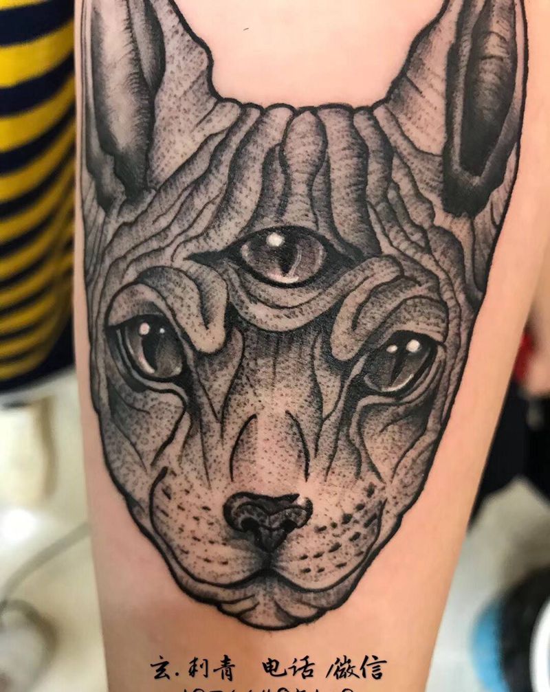 当前位置: 首页 >山东省滨州市纹身店-玄.刺青纹身图案>猫头纹身图片