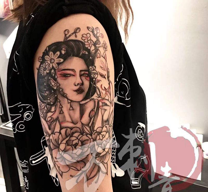 艺伎纹身图片_手臂新传统艺伎纹身图案