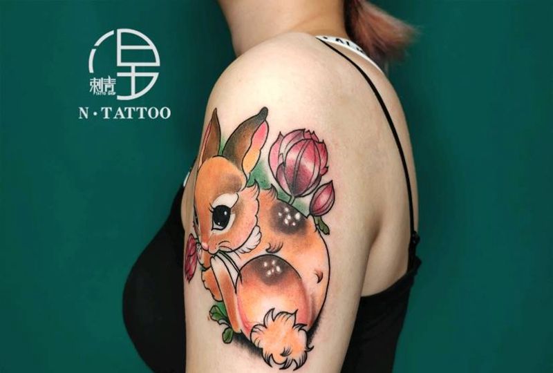 当前位置: 首页 >河南省郑州市纹身店-涅刺青纹身图案>兔子纹身图片_手臂New School纹身图案