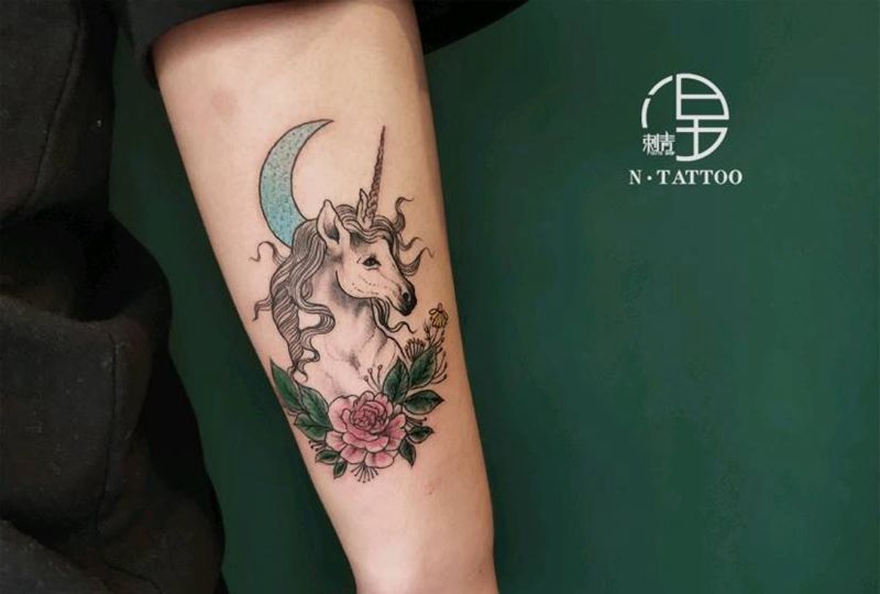 当前位置: 首页 >河南省郑州市纹身店-涅刺青纹身图案>独角兽纹身图片_手臂纹身图案