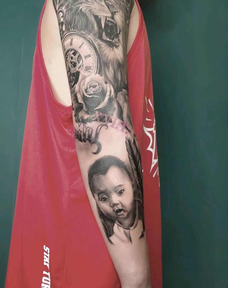 花臂肖像纹身图片_手臂欧美写实纹身图案