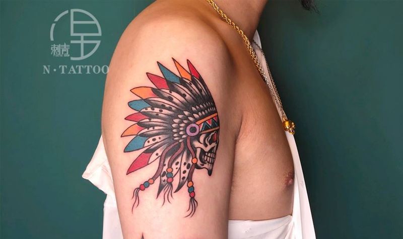 当前位置: 首页 >河南省郑州市纹身店-涅刺青纹身图案>印第安纹身图片_手臂Old School纹身图案