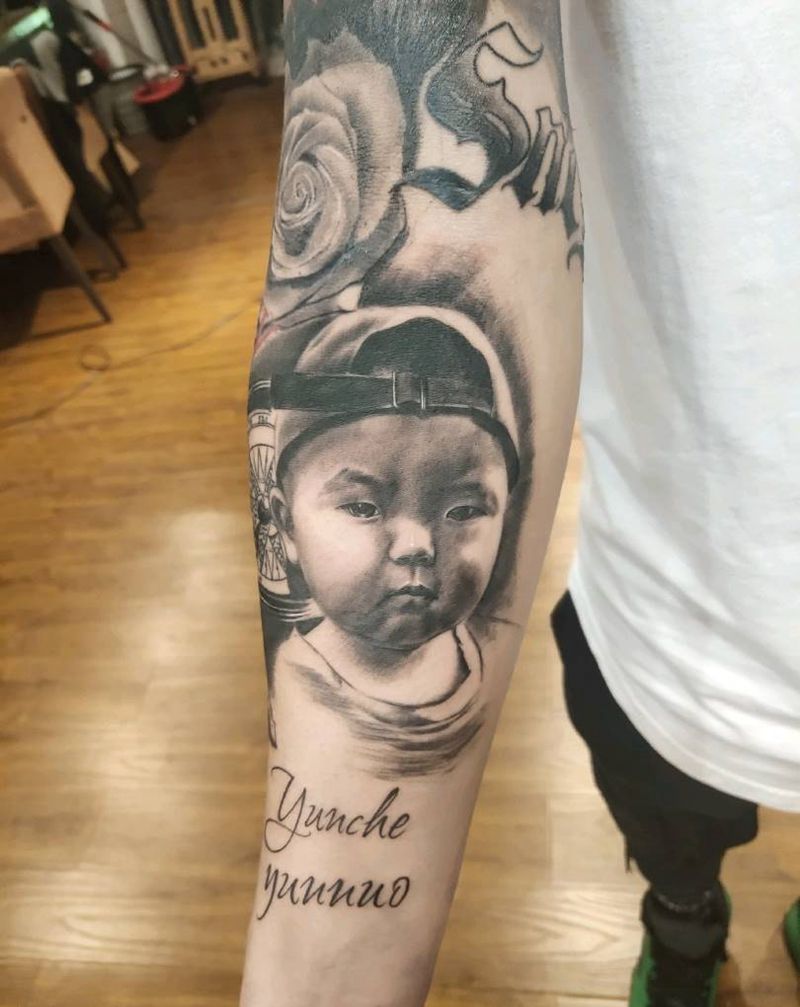 当前位置: 首页 >河南省郑州市纹身店-涅刺青纹身图案>肖像纹身图片_手臂欧美写实肖像纹身图案
