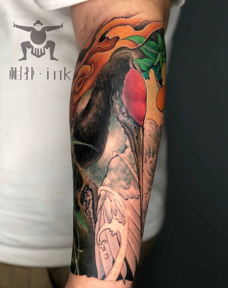 仙鹤包小臂纹身图片_手臂新传统纹身图案