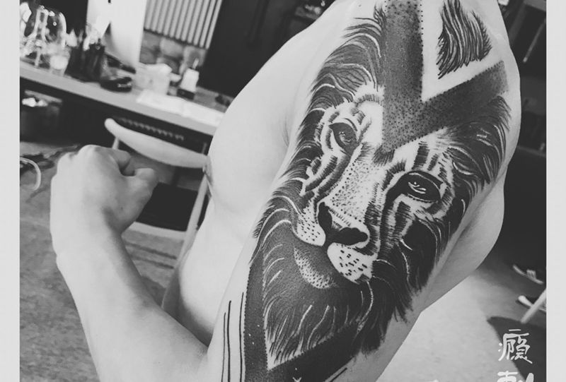 当前位置: 首页 >河南省郑州市纹身店-瘾刺青纹身图案>大臂狮子纹身图片