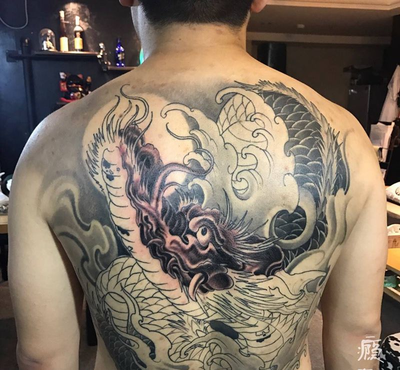 • T云龙九郎纹身图片_背部老传统云龙九郎纹身图案