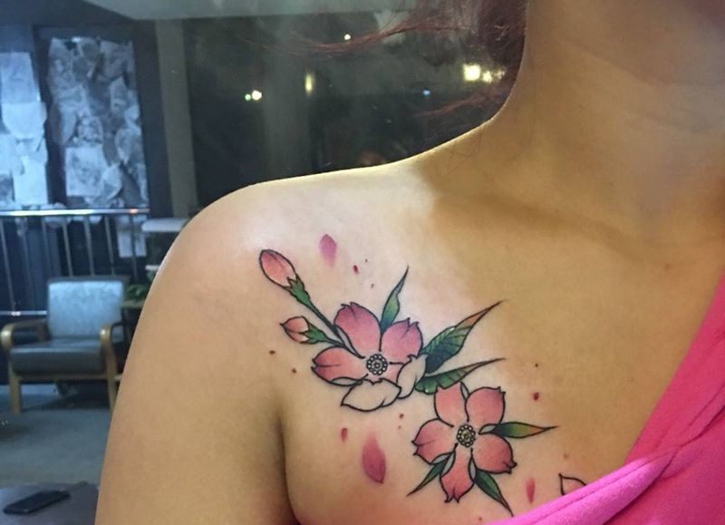 • 女性大花胸纹身_43张霸气漂亮的女性大花胸纹身图案作品