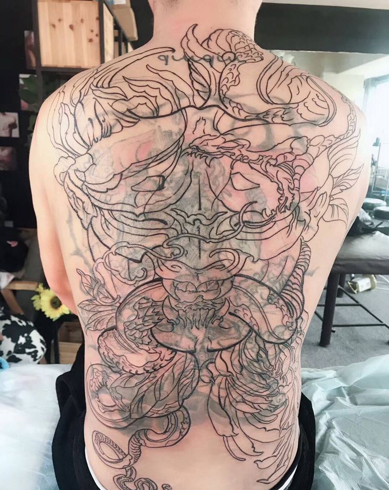 • T云龙九郎纹身图片_背部老传统云龙九郎纹身图案