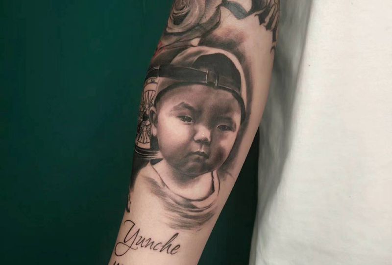 当前位置: 首页 >河南省郑州市纹身店-涅刺青纹身图案>头像写实纹身图片_手臂欧美写实纹身图案
