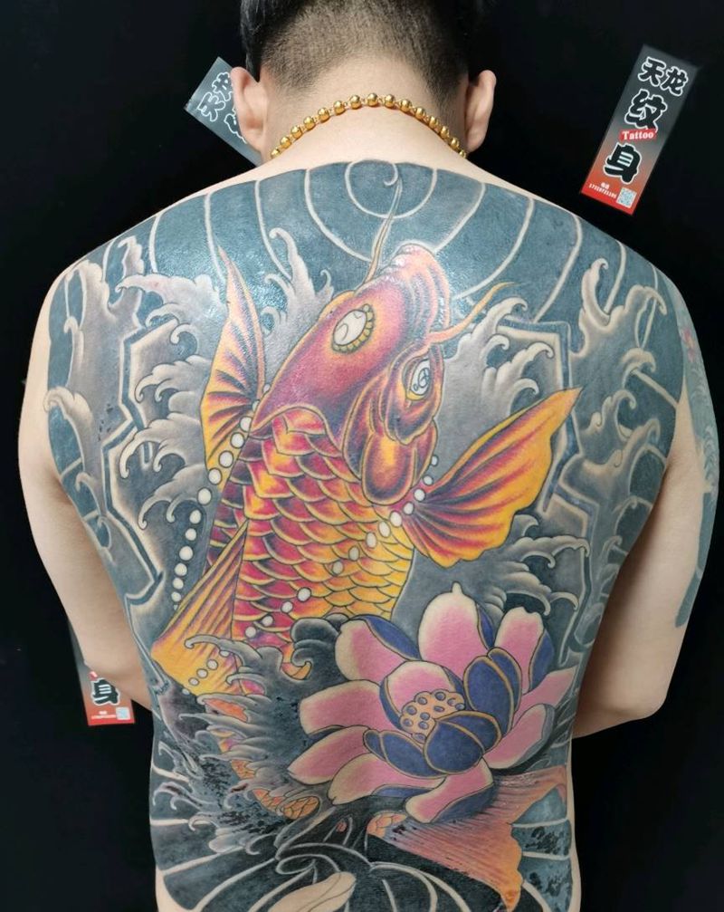 当前位置: 首页 >河南省郑州市纹身店-郑州天龙纹身纹身图案>鱼跃石瀑纹身图片_新传统老传统纹身图案