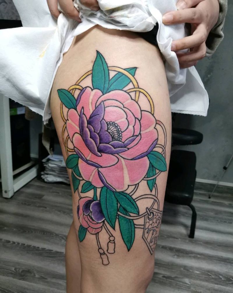 老传统牡丹纹身图片_老传统新传统纹身图案