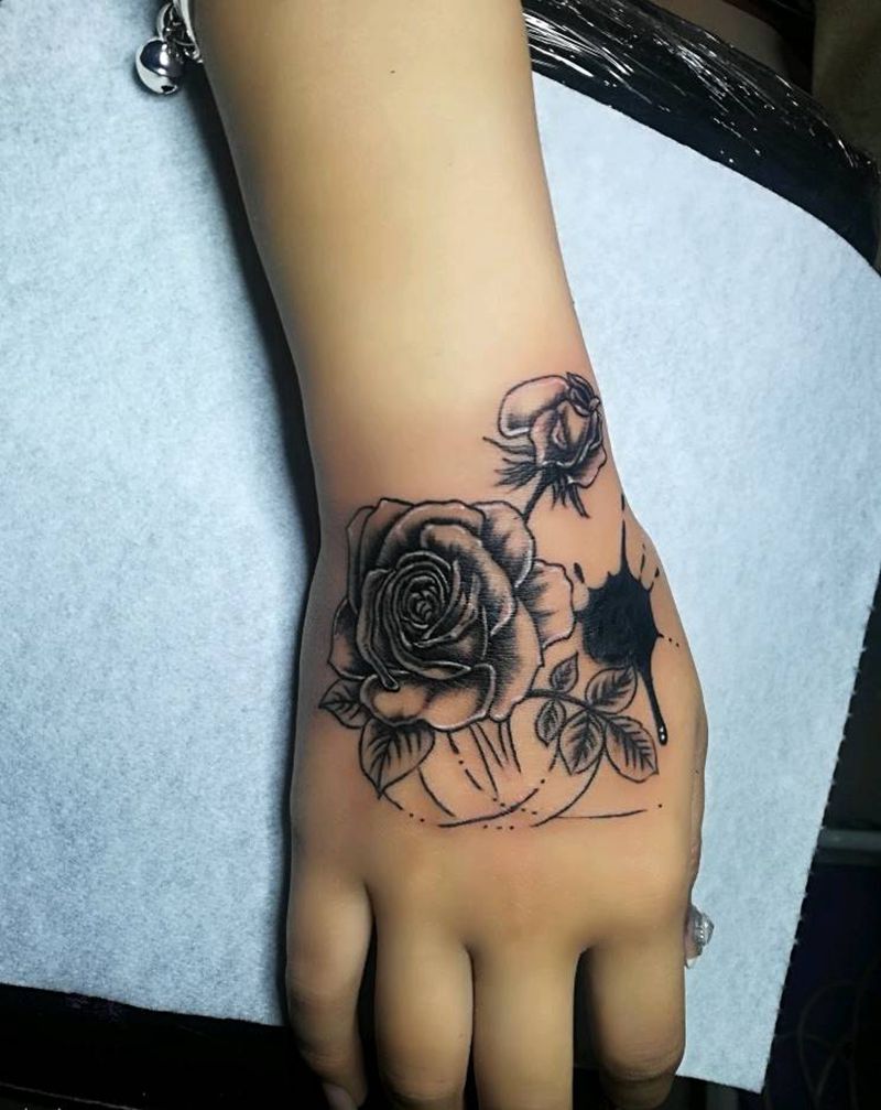 • 手背潮流时尚的玫瑰花眼睛纹身图案