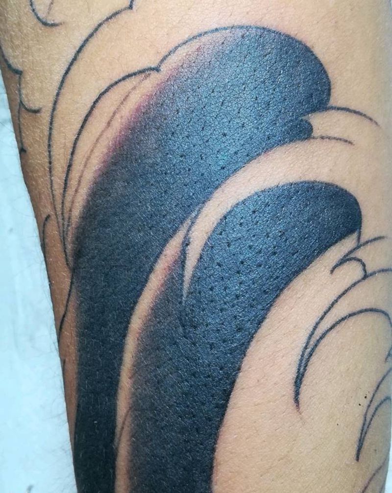• T网红王老大花腿龙纹身图片_腿部新传统纹身图案