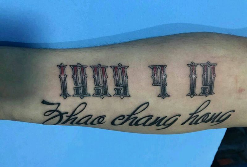 • T家庭图,一家四口生日纪念!纹身图片_手臂纹身图案
