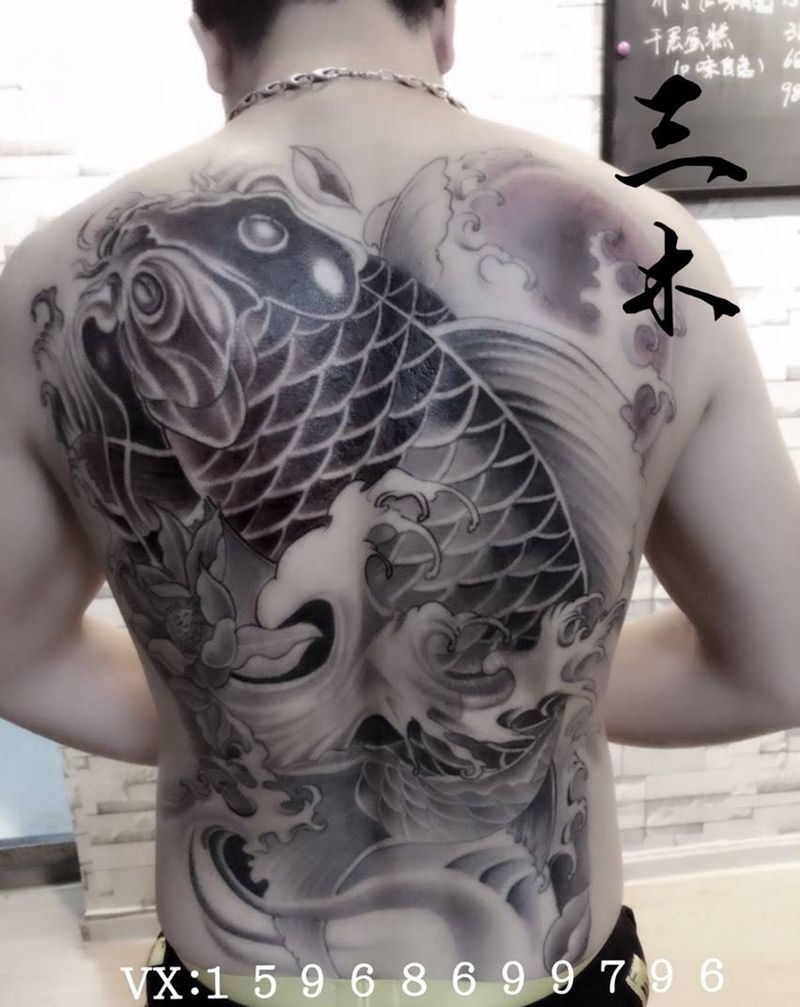 当前位置: 首页 >河南省郑州市纹身店-三木纹身工作室纹身图案>满背鲤鱼纹身图片