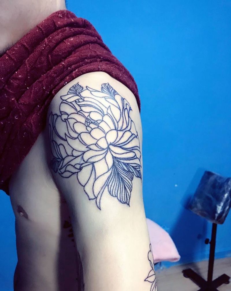 • 女性大花胸纹身_43张霸气漂亮的女性大花胸纹身图案作品