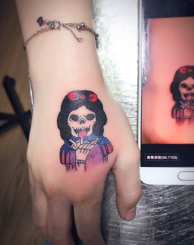 • 手背潮流时尚的玫瑰花眼睛纹身图案