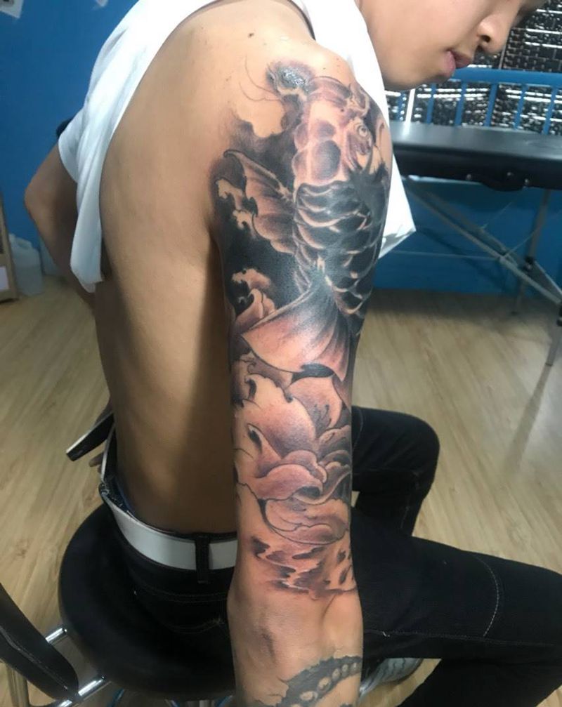 当前位置: 首页 >河南省郑州市纹身店-三木纹身工作室纹身图案>花臂遮盖纹身图片