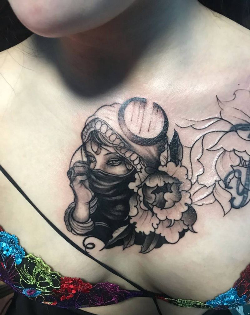 • 女性大花胸纹身_43张霸气漂亮的女性大花胸纹身图案作品