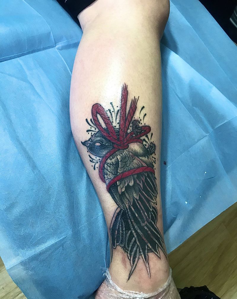 • T网红王老大花腿龙纹身图片_腿部新传统纹身图案