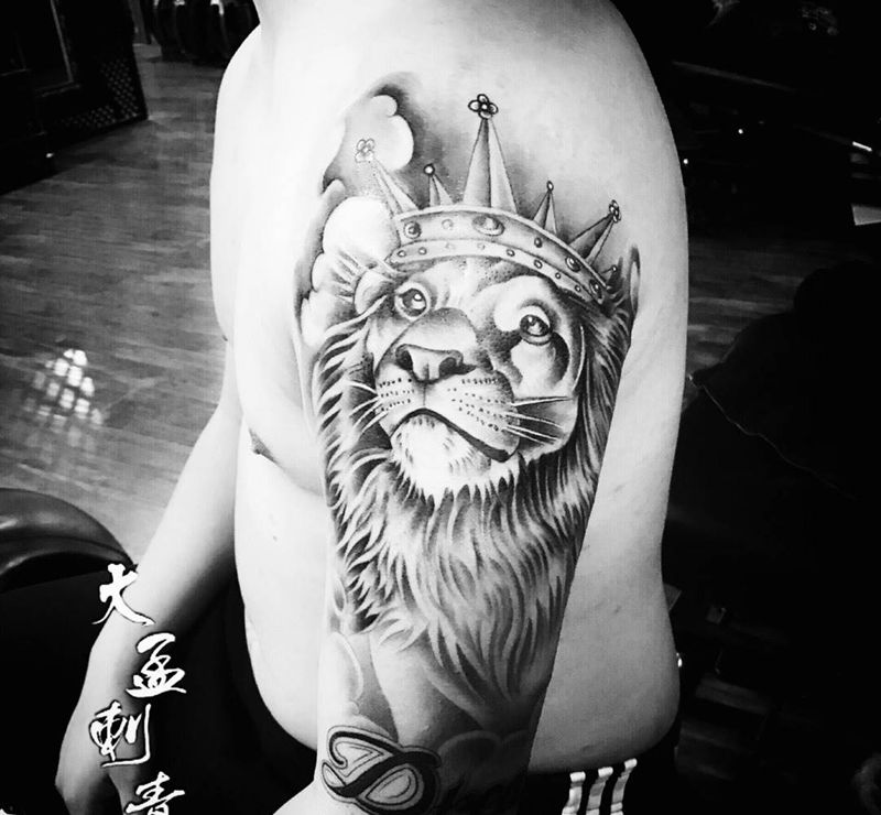 当前位置: 首页 >河南省郑州市纹身店-大孟刺青工作室纹身图案>大臂辛巴纹身图片_成品手臂写实原创纹身图案