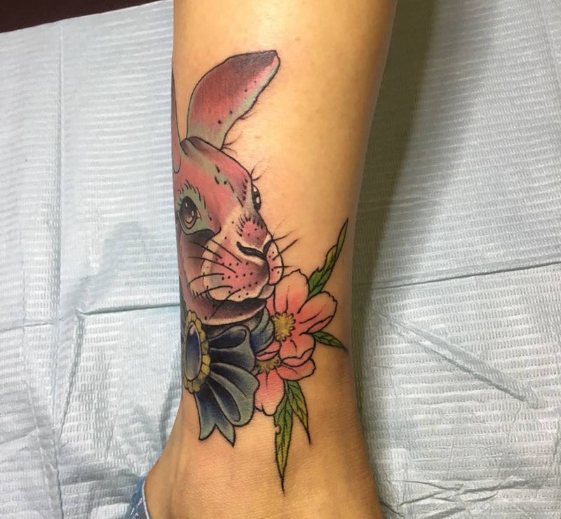 • T包小腿吹火男+阿多福纹身图片_腿部老传统新传统吹火男阿