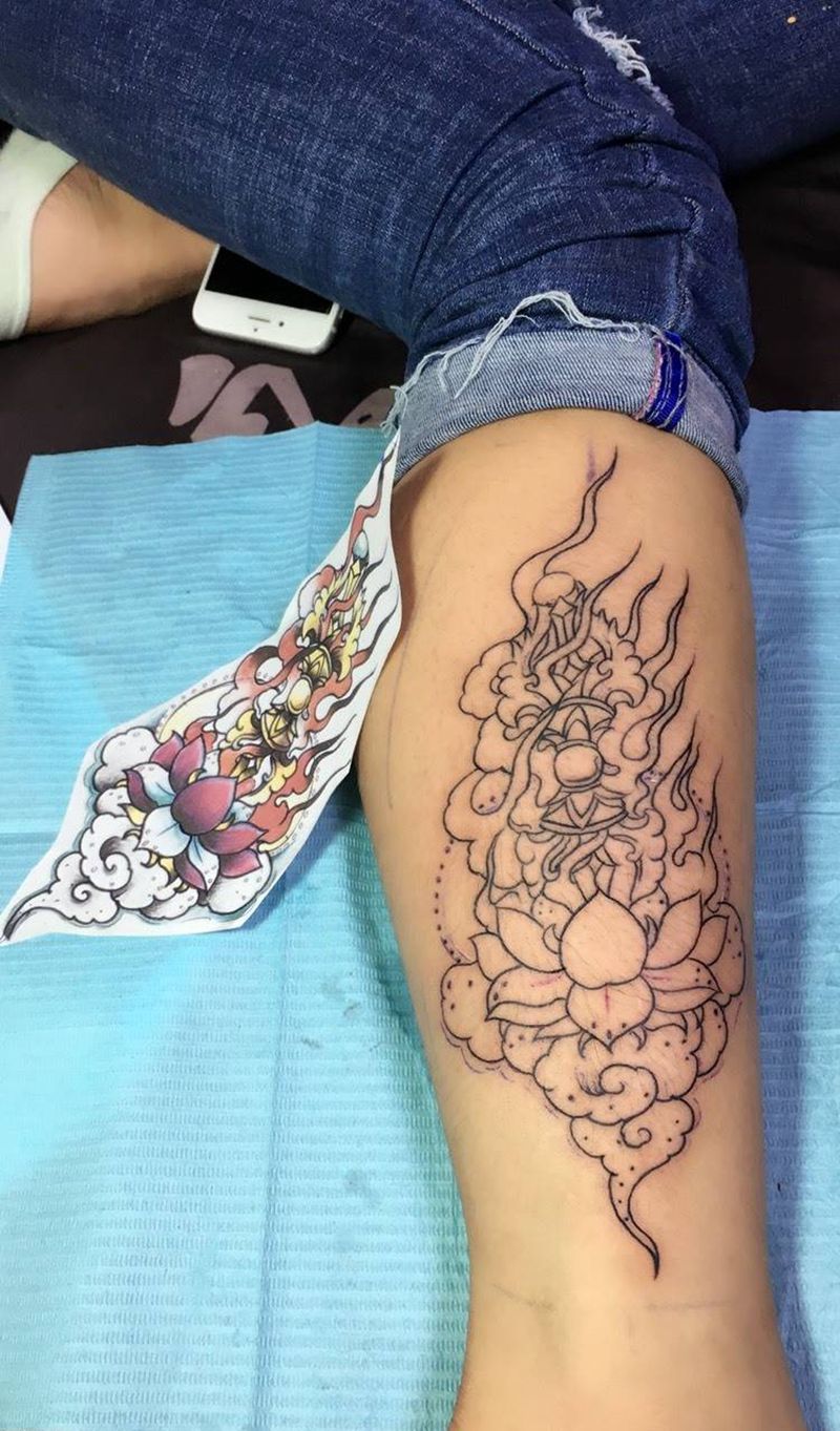 一组15张莲花纹身手
